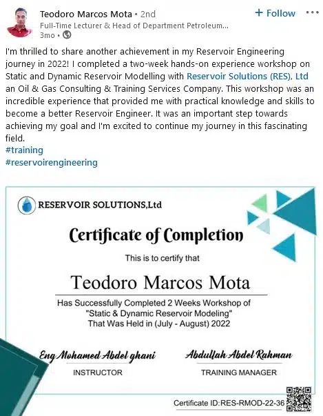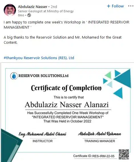This course provides practical training in Integrated Reservoir Management, focusing on the integration of geological, petrophysical, and engineering data to optimize reservoir performance and recovery strategies. Participants will learn how to analyze reservoir behavior, evaluate production data, design development plans, and apply simulation tools to support informed decision-making. The course covers key concepts in reservoir monitoring, uncertainty assessment, and field optimization, equipping attendees with the skills needed to manage reservoirs efficiently throughout their lifecycle.